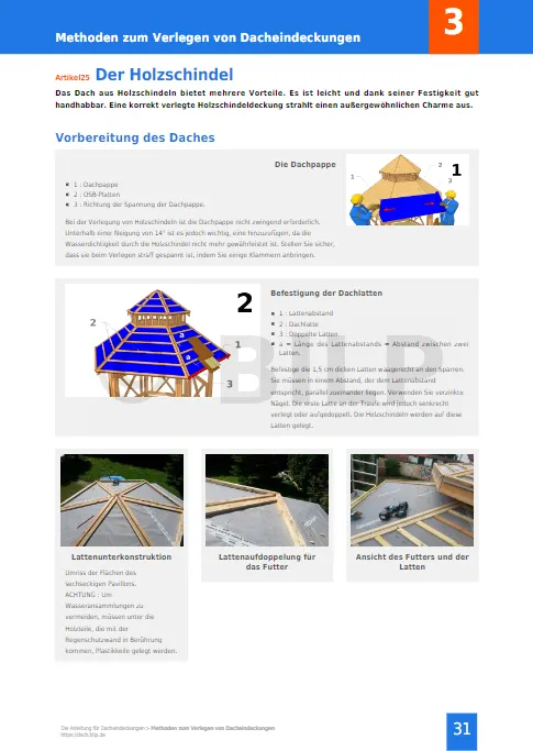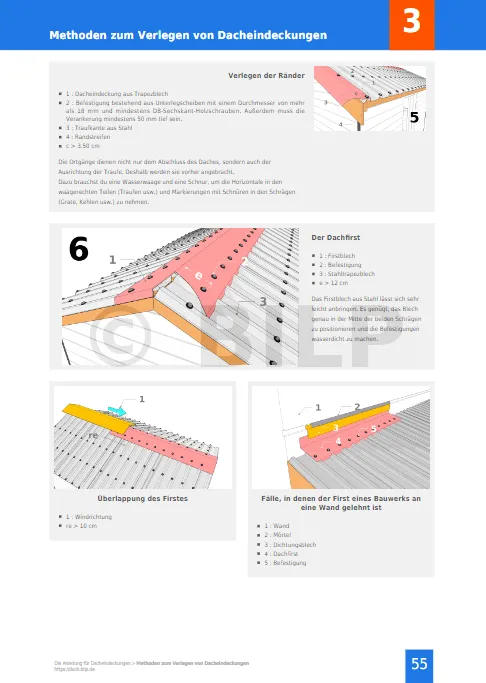 Konkrete Informationen für Ihr Projekt. Alle Geheimnisse, alle Tipps und Tricks für eine erfolgreiche Verlegung Ihrer Dacheindeckungen. Alle Techniken, alle Arten von Dacheindeckungen werden objektiv und unabhängig beschrieben. Detaillierte Ansichten beschreiben alle Schritte des Verlegens.
