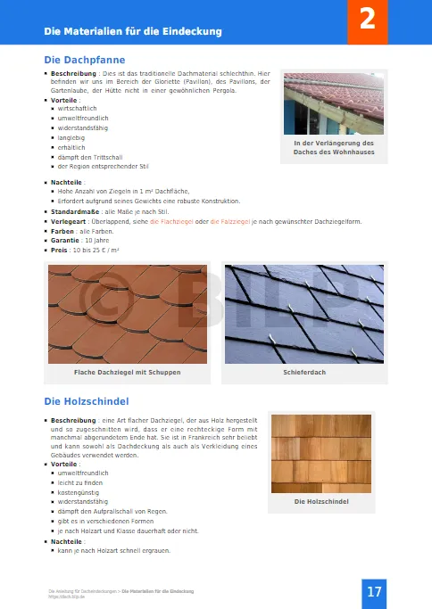 Die Anleitung zur Auswahl und Verlegung von Dacheindeckungen, zum HERUNTERLADEN