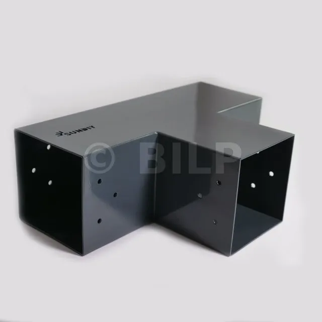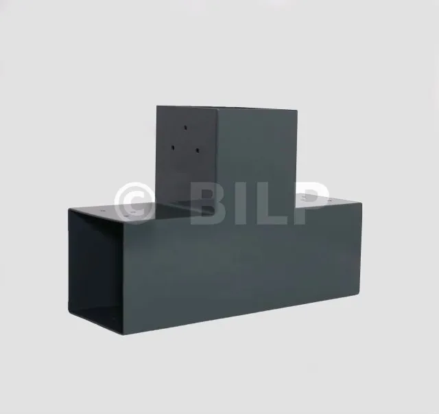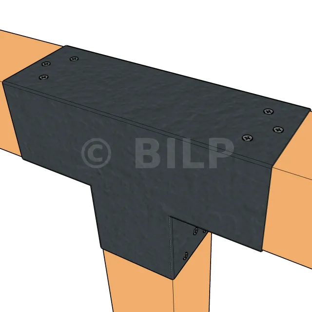 Es wird verwendet, um einen 90x90-mm-Träger senkrecht mit einem anderen 90x90-mm-Träger zu verbinden, OHNE dass er von einem vertikalen Pfosten getragen wird.