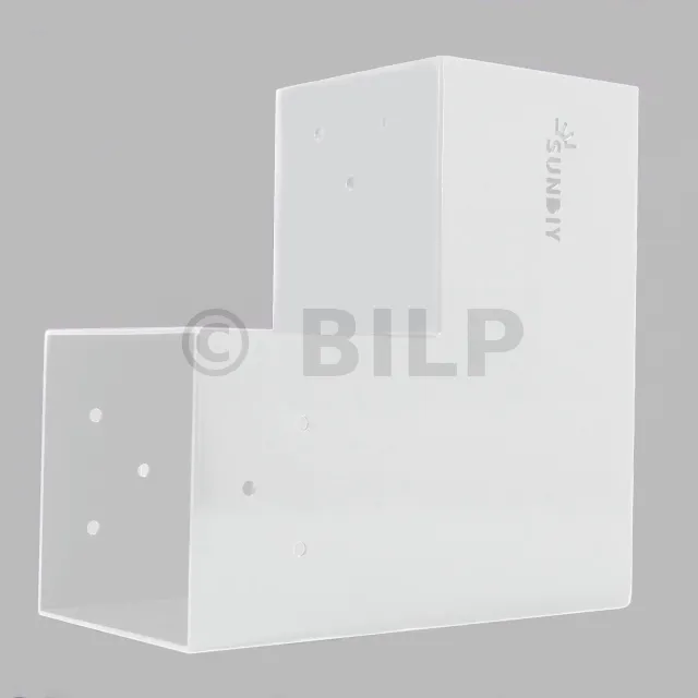 Es wird in einem Außenwinkel verwendet. Dieser Anschluss ermöglicht die Aufnahme einer großen 120x120mm-Steckdose, die senkrecht zu einer 120x120mm-Steckdose steht, die insgesamt von einem 120x120mm-Vertikaltopf unterstützt wird.