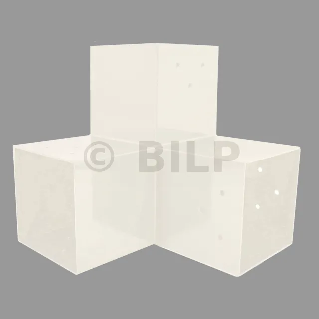 Es wird in einer Außenecke verwendet. Mit diesem Verbinder können Sie einen 90 x 90 mm großen Balken senkrecht mit einem anderen Balken oder mit einem 90 x 90 mm großen vertikalen Pfosten verbinden.