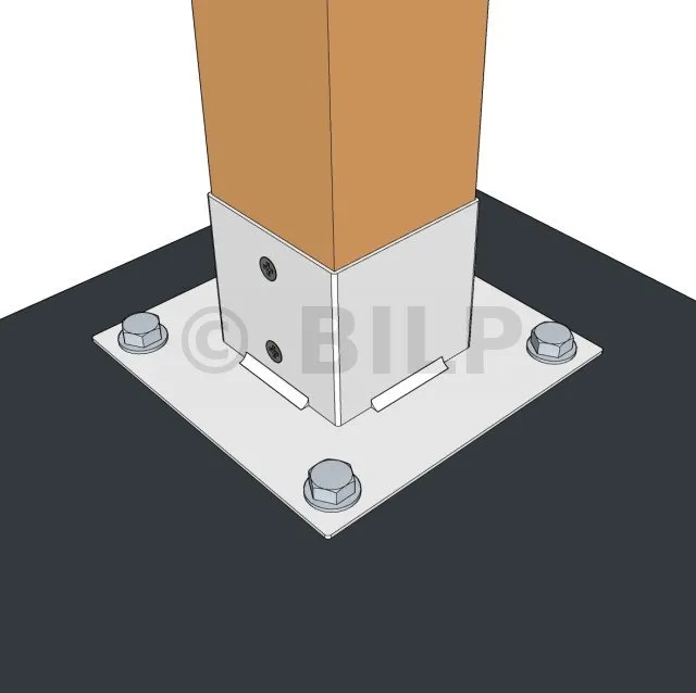 Dadurch können die Pfosten auf einer Platte oder Betonplatte befestigt werden.