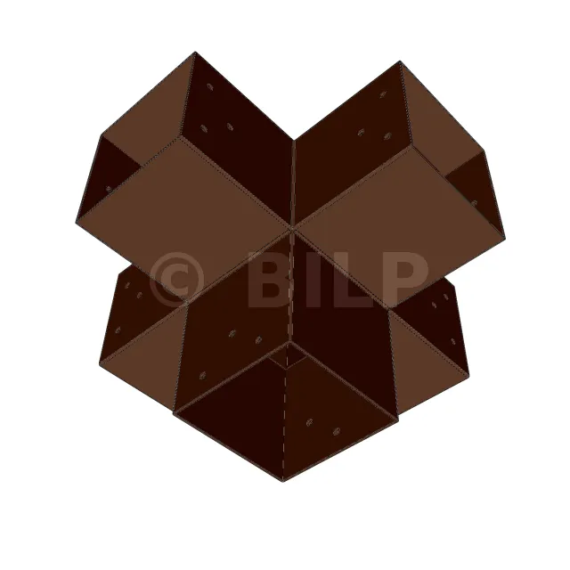 Es ist möglich, zwei 120 x 120 mm große Aussparungen senkrecht zu einer anderen 120 x 120 mm großen Aussparung aufzustellen, die insgesamt von einem 120 x 120 mm großen vertikalen Ausgießer unterstützt wird.