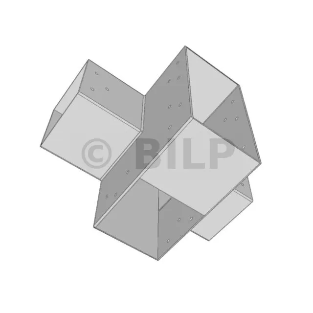 Es ermöglicht die senkrechte Verbindung von zwei 120 x 120 mm großen Balken zu einem großen 240 x 120 mm großen Balken, wobei das Ganze von einem 120 x 120 mm großen vertikalen Pfosten getragen wird.