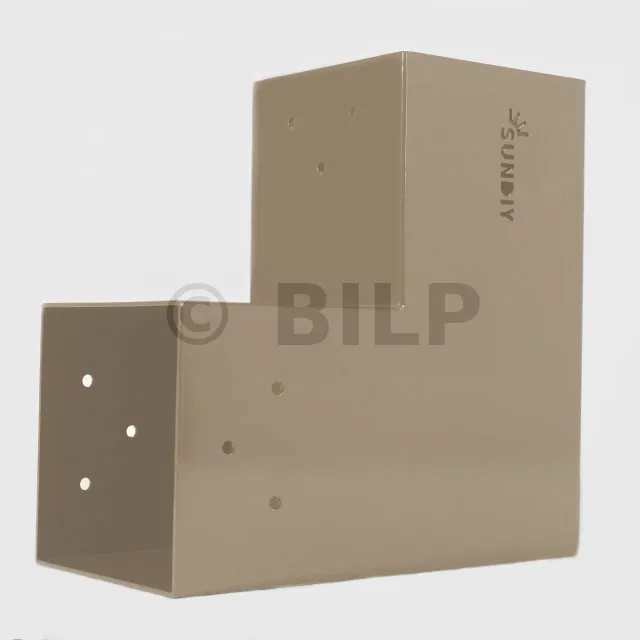 Es wird in einer Außenecke verwendet. Mit diesem Verbinder können Sie einen 90 x 90 mm großen Balken senkrecht mit einem anderen Balken oder mit einem 90 x 90 mm großen vertikalen Pfosten verbinden.