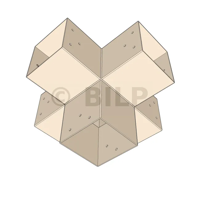 Es ist möglich, zwei 120 x 120 mm große Aussparungen senkrecht zu einer anderen 120 x 120 mm großen Aussparung aufzustellen, die insgesamt von einem 120 x 120 mm großen vertikalen Ausgießer unterstützt wird.