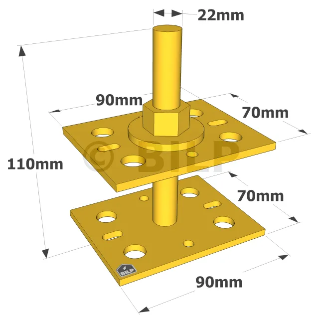 Die kleinen verstellbaren Pfostenfüße APB7090 sind klein und eignen sich besonders für die Befestigung von Leitplanken oder Fußbodenheizungen.