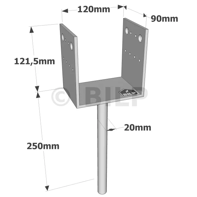 U-Pfostenträger zum Einbetonieren - Réf. PPD120/90G