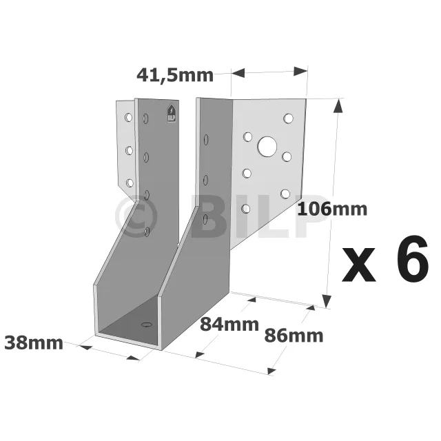 Balkenschuhe mit außenliegenden Schenkeln, SAE CLASSIC-Serie (Dicke 2 mm, Tiefe 84 mm) - Réf. SAE250/38/2_6