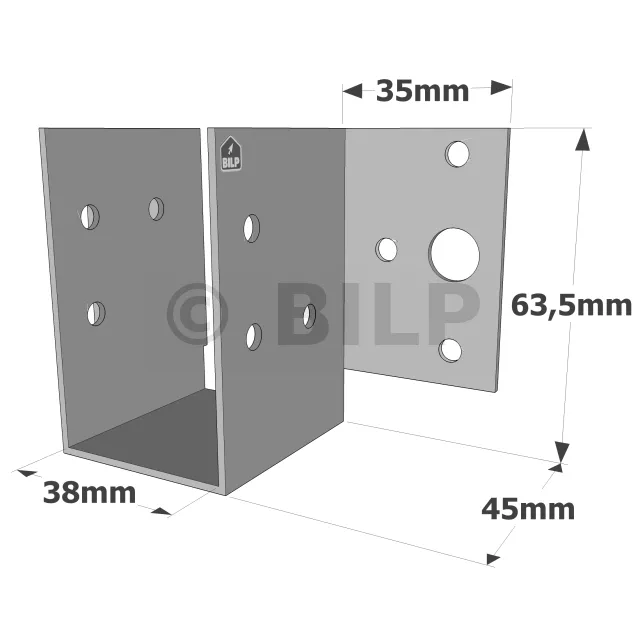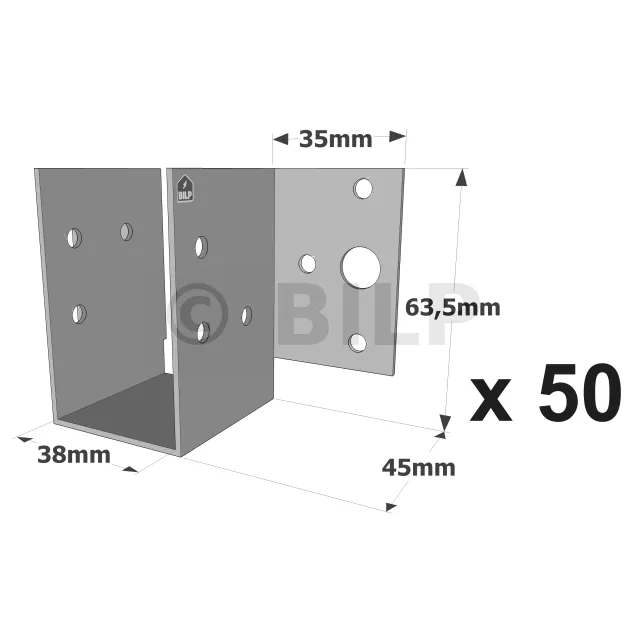 Balkenschuhe mit außenliegenden Schenkeln, MF-Sortiment, für MF-Mini-Pfettenanker - Réf. MF165/38/1.5_50