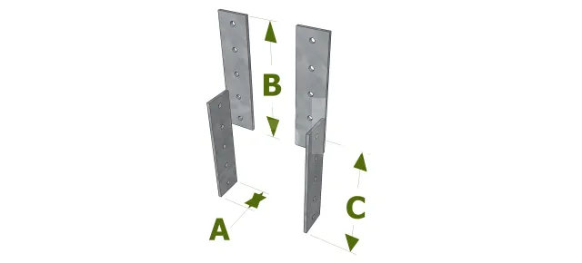 - Holz-/Holzbefestigung - Träger/TrägertypSchenkel B : 9 ; Schenkel C : 7 ; Typ : CNA Ø4,0x35 oder Ø4,0x50 mm - Montage mit 2 Winkelverbinder
