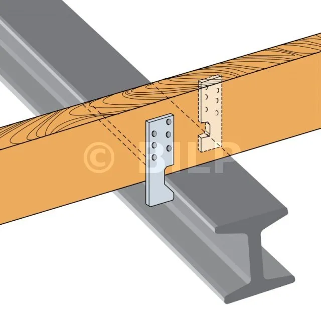 Der IPN-Anker ermöglicht die Befestigung von Holzbalken an metallischen I-Trägern vom Typ IPN. Diese Befestigung wird durch Kerben gewährleistet.