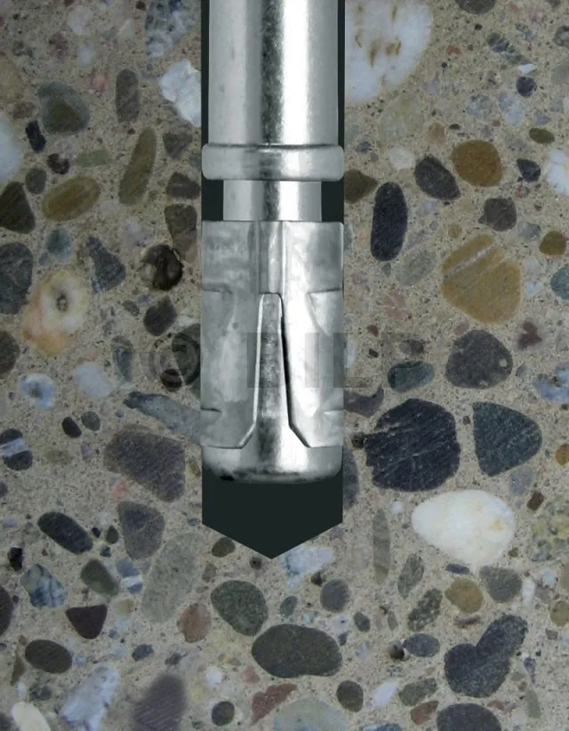 | Referenzen | Produktreferenz | Abmessungen [ØxL] [mm] | Bohr-Ø [d0] [mm] | Prof. min. Bohrtiefe [h1] [mm] | Ø Bohrung im zu befestigenden Teil (durchgehend) [df] [mm] | Schlüsselweite an der Fläche [SW] [mm] | Anziehen Drehmoment [Tinst] [Nm] | Prof. Verankerung [hef] [mm | Ep. Mindestauflage [hmin] [mm] |