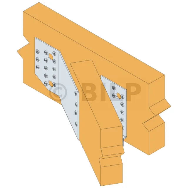 Der Holzbalkenschuh mit variablem Winkel für Dachstühle wurde für Verbindungen zwischen 10° und 30° oder 15° und 30° entwickelt. Er ist für Dachstühle (38 mm) und doppelte Dachstühle (80 mm) erhältlich.