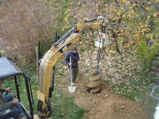 Pour la fabrication et l’application du béton, consultez le chapitre Les techniques de base du maçon. Si vous prévoyez de réaliser la tête du plot dans un second temps, insérez un ferraillage qui fera la liaison entre les deux parties.