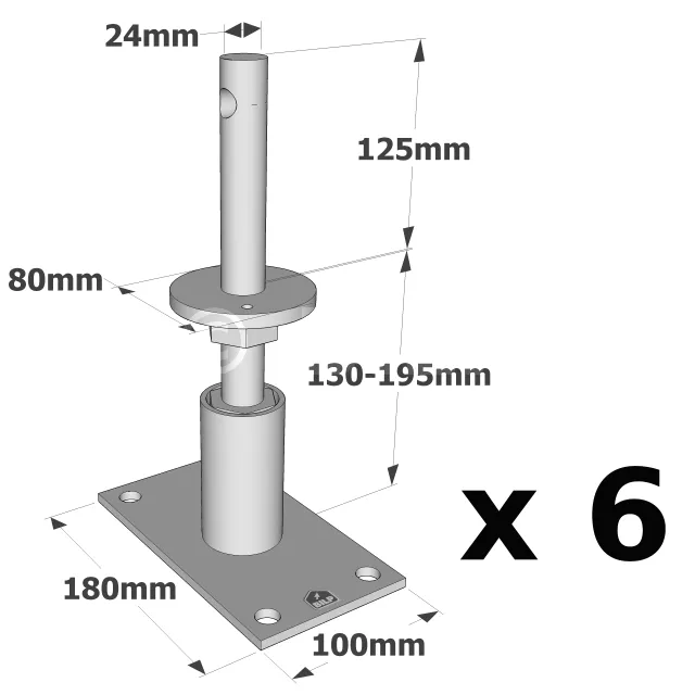 Verstellbarer Rohrpfostenfuß für hohe Belastungen - Réf. PGS24/130_6