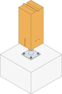 - Holzverbindung auf starrem TrägerAuf Pfosten: 2Ø8 (STD-Stabdübel oder Bolzen); auf Beton : 4Ø12 (WA-Stabdübel; Gewindestange)
