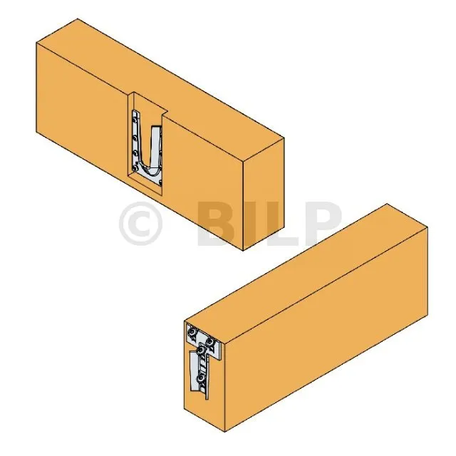 Der ETSN-Stahlpassverbinder ist ein innovativer und sehr diskreter Verbinder. Er ermöglicht es, die Ästhetik einer traditionellen Passverbinderverbindung nachzubilden. Der weibliche Teil wird mit CSA-Schrauben oder CNA-Nägeln auf dem Hauptträger platziert, während der männliche Teil mit Flachkopfschrauben am Ende des Nebenträgers befestigt wird.