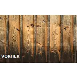 - Gründlich abspülen und mindestens 72 Stunden trocknen lassen (Holzfeuchtigkeit kleiner oder gleich 18%), bevor eine Oberflächenbehandlung aufgetragen wird.
