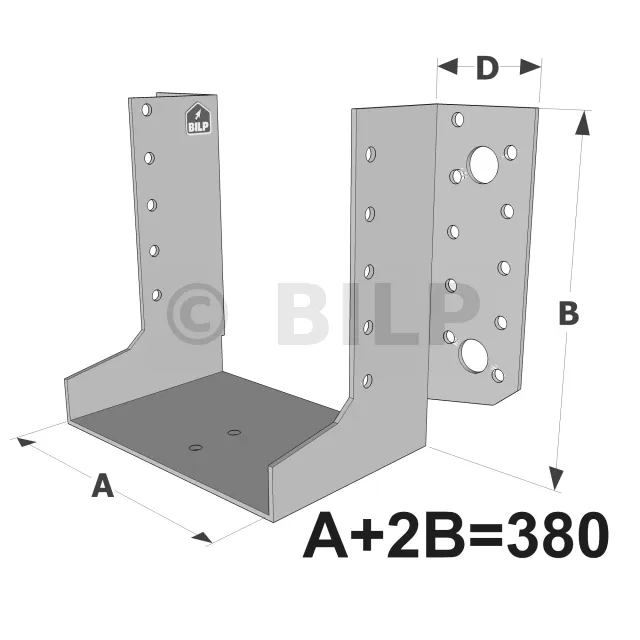 Balkenschuh mit außenliegenden Schenkeln, SAE-Sortiment NACH MAß (Dicke 2 mm, Tiefe 84 mm) - Réf. SAEL380/2X