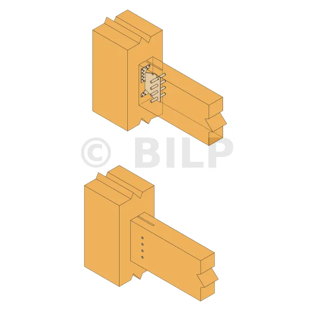 Die Länge der Stabdübel muss kleiner oder gleich der Breite des getragenen Balkens sein.