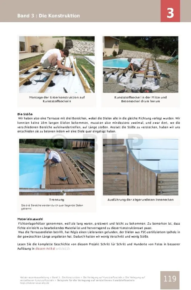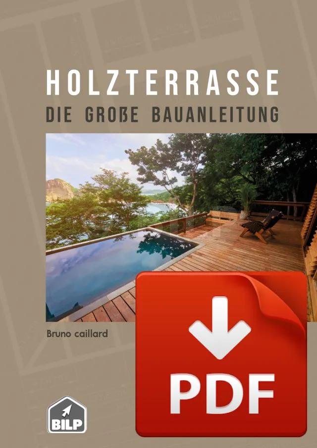 Aber Vorsicht, es wird viel Unsinn gesagt und viele Leute wiederholen ihn. Eine Holzterrasse besteht nicht nur aus Dielen, die auf Lagerhölzer geschraubt sind. Unsere Anleitung ist nicht umsonst mehr als 200 Seiten lang. Und all dies werden Sie bald entdecken.