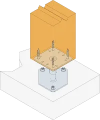 1. Legen Sie die obere Platte des Pfostenfußes unter den Pfosten.