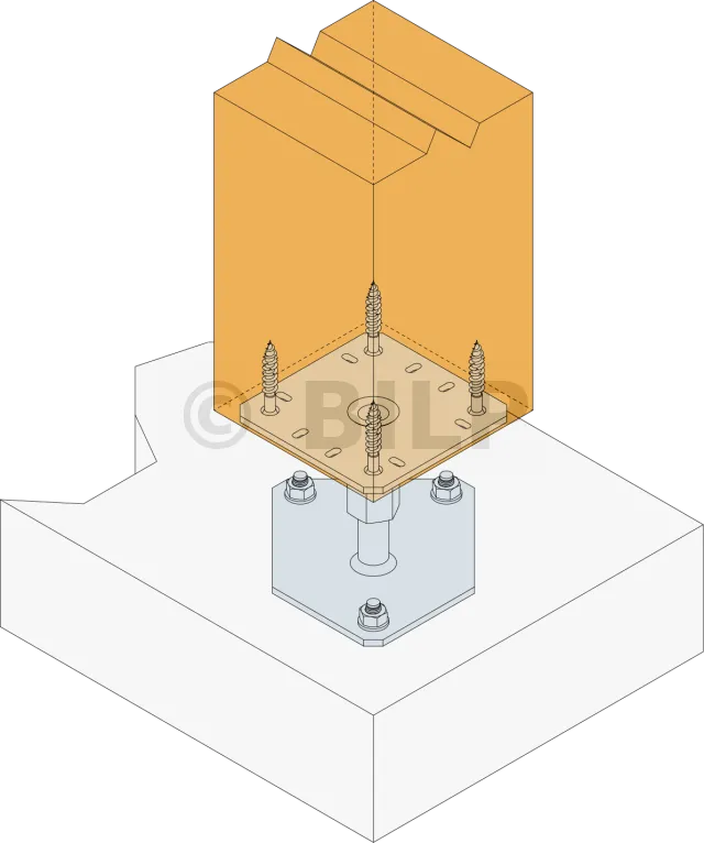 2. Befestigen Sie diese Platte mit LAG-Zugschrauben am Pfosten (Vorbohren erforderlich).