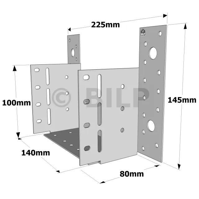 - Bohrungen auf dem HauptträgerSeitenwände : 6Ø5; 8Ø5x7.5 - Boden : 10Ø5