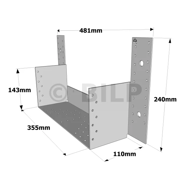 - Bohrungen auf dem HauptträgerSeitenwände : 14Ø5; Boden : 33Ø5