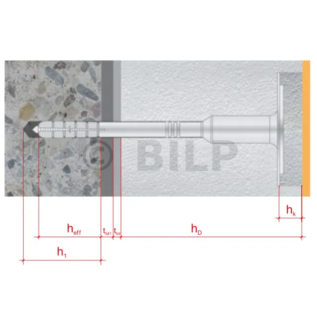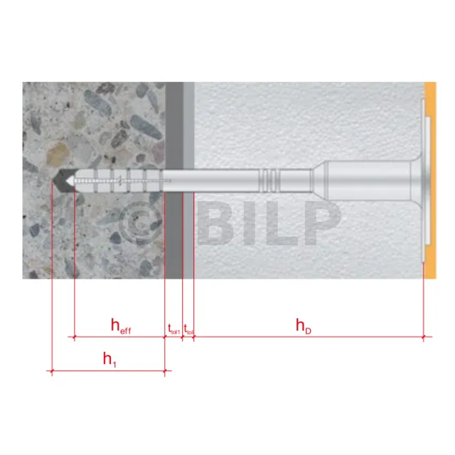 - hef: Verankerungstiefe (Die betreffenden Referenzen sind den Produktblättern zu entnehmen.)