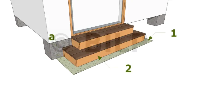 Ce type d’escalier est un assemblage de plateformes superposées. Les marches de l’escalier sont comme une pile de boîtes construites solidement sur un socle bien dur. Chaque boîte est un cadre fait par un assemblage de pièces de bois (5 cm x 15 cm fera l’affaire). La hauteur de chaque marche ne doit pas excéder 20 cm. Mais les longueurs et largeurs peuvent varier selon les besoins.