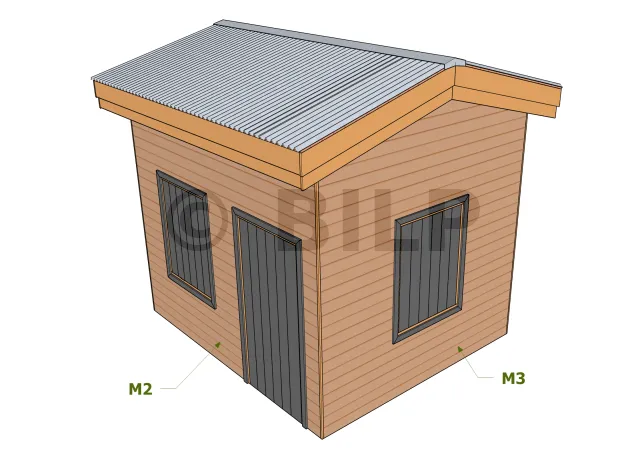 Composition globale de la structure Nomenclature du mur M1 Nomenclature du mur M2 Nomenclature du mur M3 Nomenclature du mur M4 Nomenclature de la toiture: ferme Nomenclature de la toiture: chevron Nomenclature de la toiture: closoirs des chevrons et des fermes Bardage des façades Nomenclature des bandes de rive Volige PORTE FENÊTRE CARPORT Und viele hochauflösende Illustrationen :