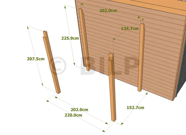 Id. Désignation Section Longueur Qté Po1 Poteau devant 9x9 cm 207.5 cm 2 Po2 Poteau sur façade 9x9 cm 227.9 cm 2