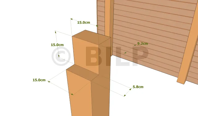 Id. Désignation Section Longueur Qté Po1 Poteau devant 15x15 cm 215.6 cm 3 Po2 Poteau sur façade 15x15 cm 247.6 cm 3