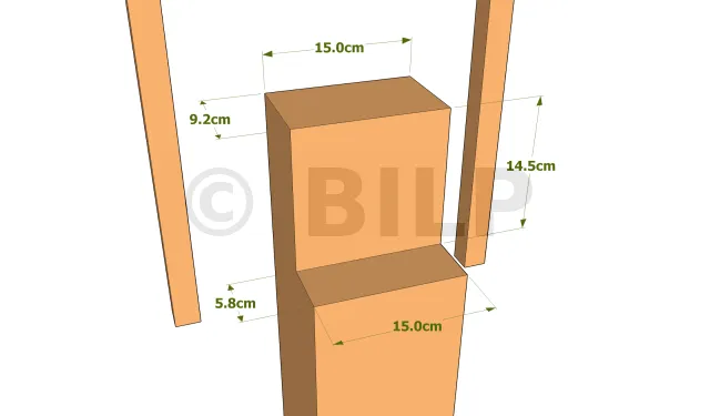 FENÊTRE Id. Désignation Section Longueur Qté F1 Planche avec emboîtement 15x3 cm 120 cm 8 F2 Montant horizontal 6x3 cm 60 cm 4 F3 Montant oblique 6x3 cm 123.1 cm 2
