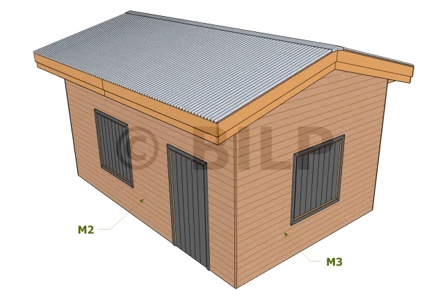 Composition globale de la structure Nomenclature du mur M1 Nomenclature du mur M2 Nomenclature du mur M3 Nomenclature du mur M4 Nomenclature de la toiture: ferme Nomenclature de la toiture: chevron Nomenclature de la toiture: closoirs des chevrons et des fermes Bardage des façades Nomenclature des bandes de rive Volige PORTE FENÊTRE CARPORT Und viele hochauflösende Illustrationen :