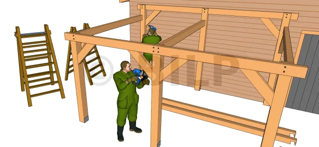 Attention aux encoches des poteaux et chevrons durant les découpes, aidez-vous des plans