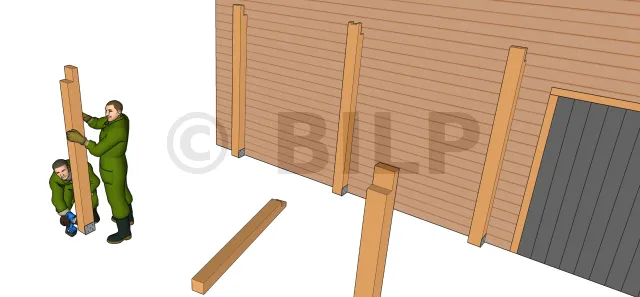 Avec de bons pied de poteaux, fixer les poteaux au sol dans des plots en béton ou dans une dalle en béton selon votre type de fondation. Assurer toujours la verticalité sur deux faces des poteaux à l’aide de niveau à bulle.
