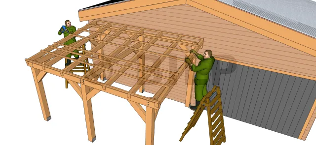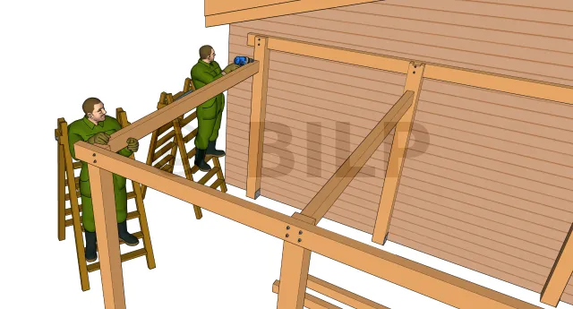 Des encoches sont faites dans les chevrons, il suffit donc de les placer sur les pannes et les fixer avec des vis adaptés. Assurez-vous que les espacements entre-chevrons sont bien répartis suivant les plans.