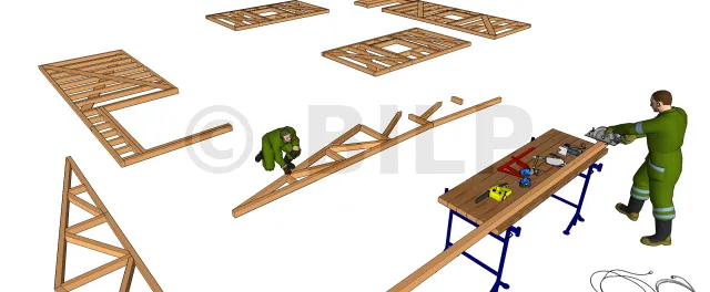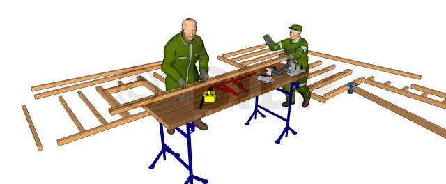 Le principe est le même que pour les ossatures des façades, seulement, il faut bien suivre les plans car les angles de découpes changent beaucoup d’une contrefiche à une autre.