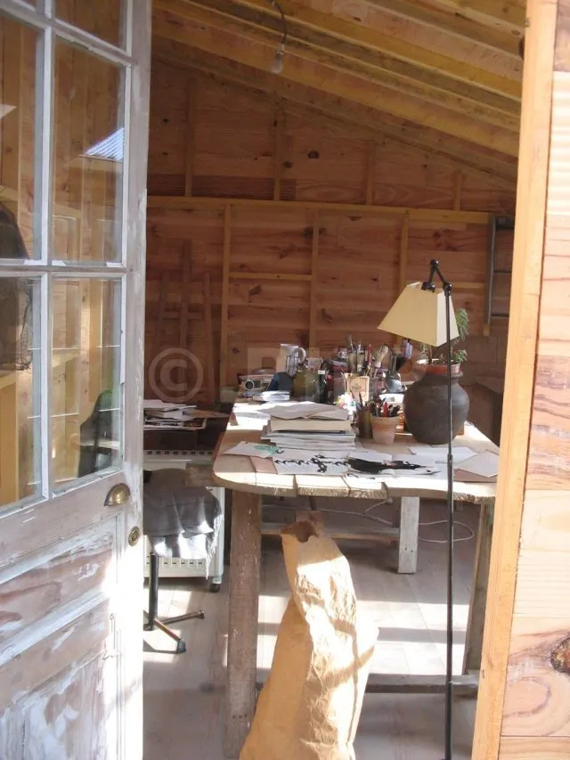 Die kleine Familie hat sich vergrößert und Madame hat nun große Schwierigkeiten, Platz für ihre künstlerischen Talente zu schaffen. Glücklicherweise hat Yves die Dinge in die Hand genommen und ihr ein wunderschönes Atelier aus Holz gebaut.