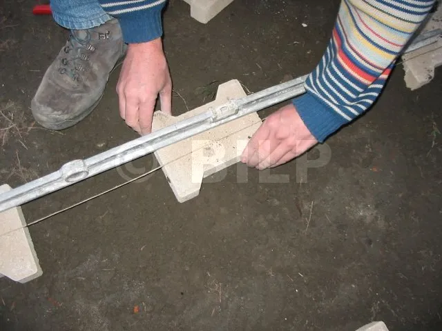 Der Abstandshalter muss senkrecht zum Pfosten stehen