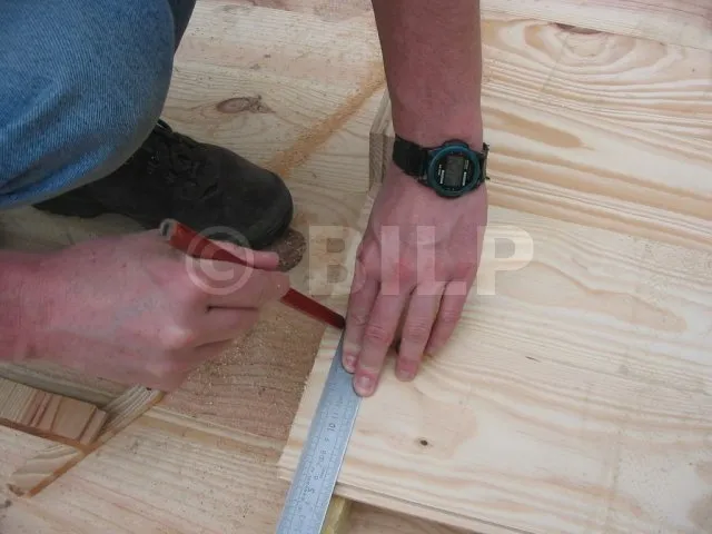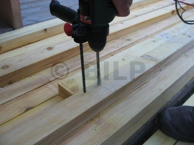 Yves markiert die Vorbohrungen im Pfosten