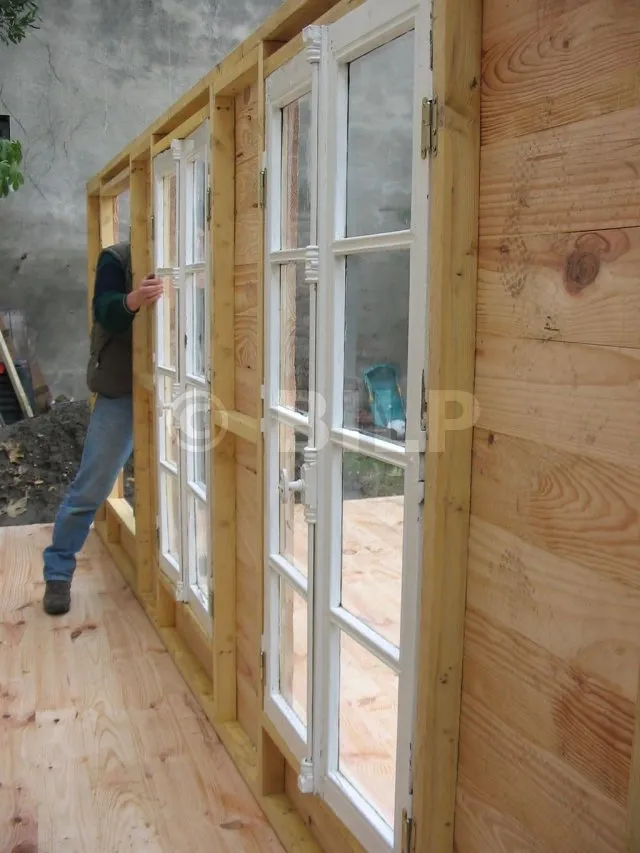 Also befestigen wir die Fensterflügel direkt an der Laibung der Struktur