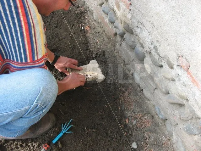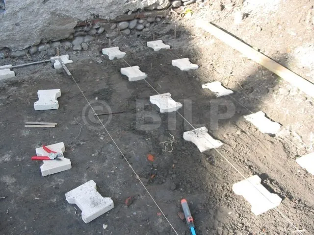 Verlegen der Pflastersteinreihen