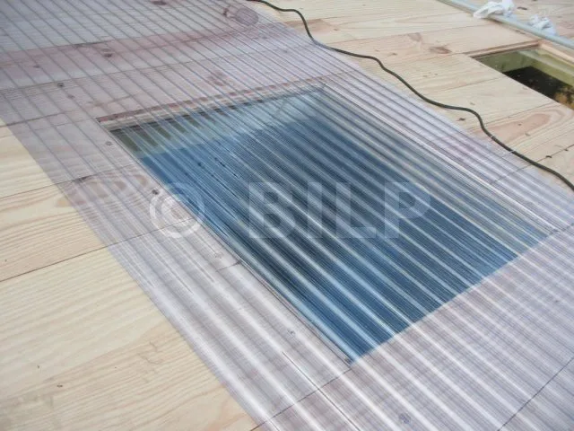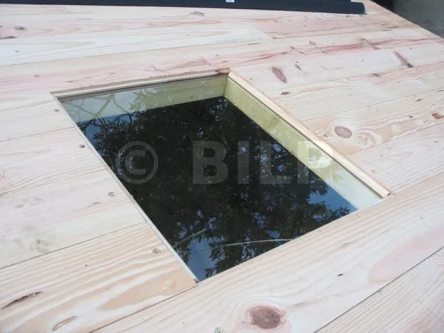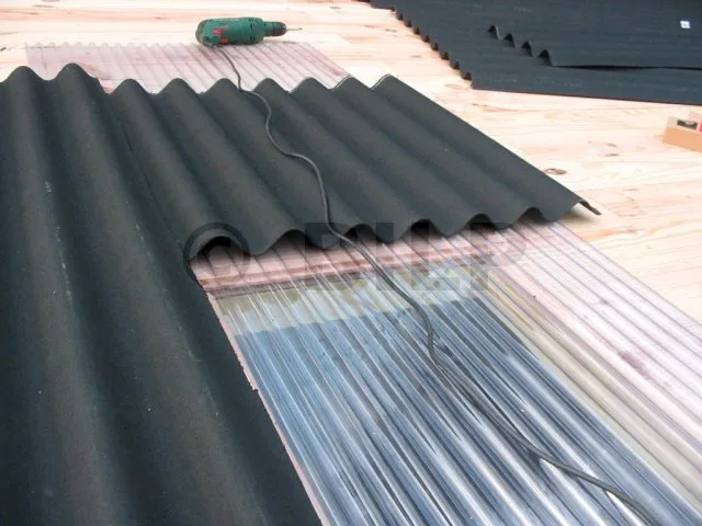 Wir haben einfach eine Öffnung in die Dachplanken geschnitten und eine durchsichtige PVC-Wellplatte darauf gelegt. Idealerweise sollte man lichtundurchlässige und transparente Platten mit demselben Wellenprofil wählen. Dies ist bei dieser Überdachung leider nicht der Fall.