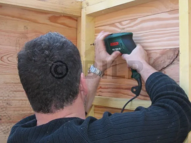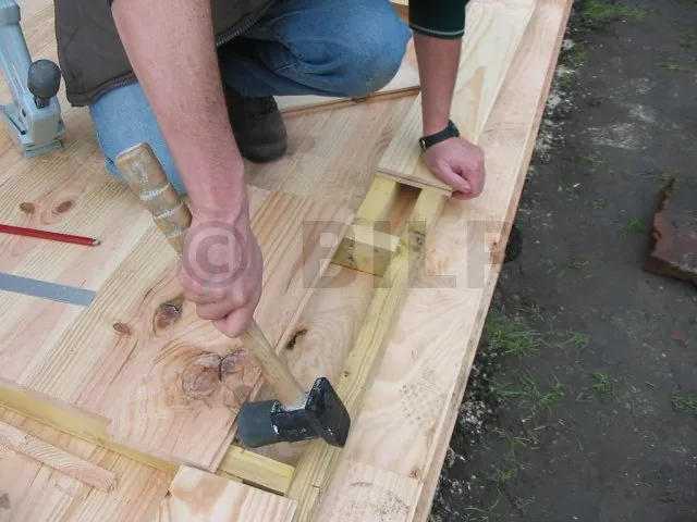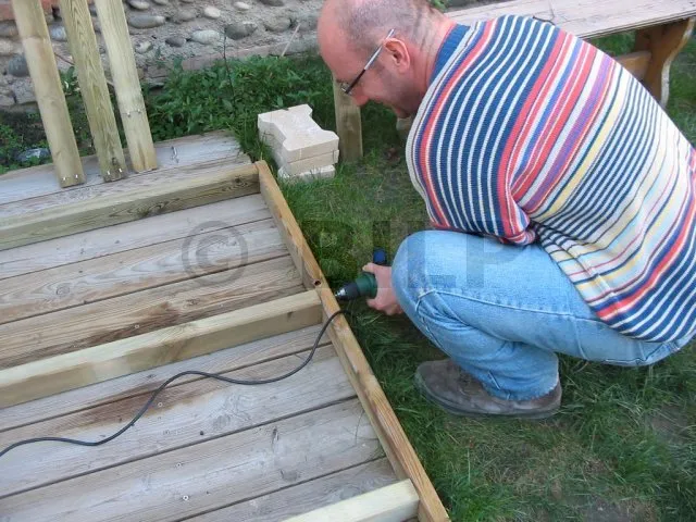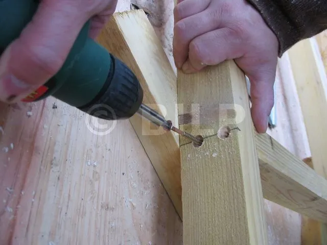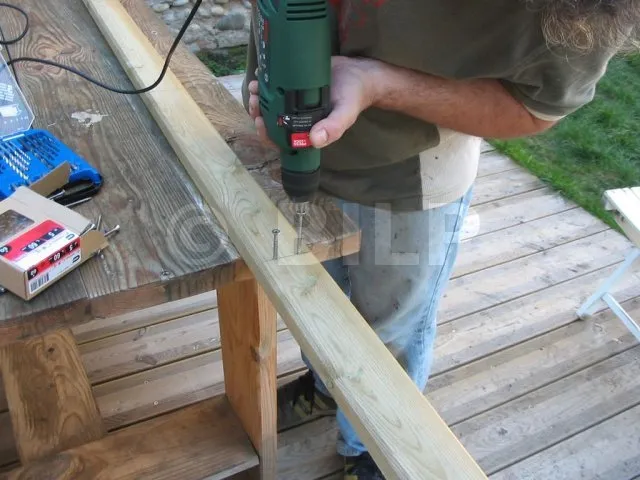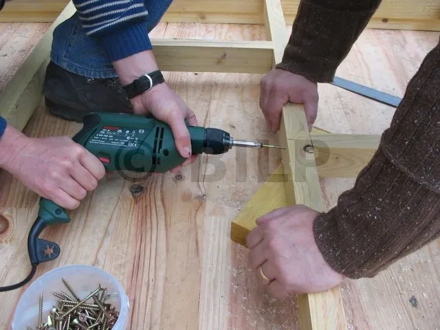 Nun werden die Dielen an der Rahmenkonstruktion befestigt.