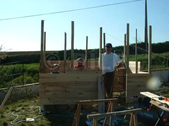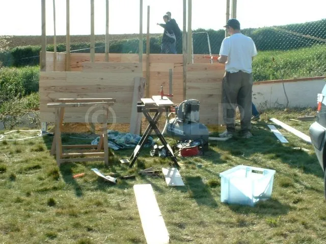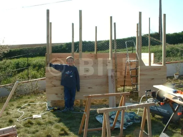 Ich hatte ein Gartenhaus für meine Kinder nach dieser Technik gebaut. Und mein Nachbar Jean-François war von der einfachen und schnellen Umsetzung begeistert. Da er ein Gartenhaus brauchte und ihm die handelsüblichen Modelle nicht gefielen, beschloss er, es nach dieser Technik selbst zu bauen.
