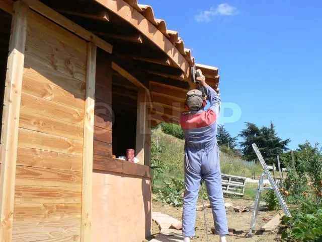 Der schwierigste Teil der Arbeit besteht darin, die Dachziegelpakete auf dem Dach zu montieren. Bei einer Hütte kann diese Aufgabe von einem einzigen Mann übernommen werden.